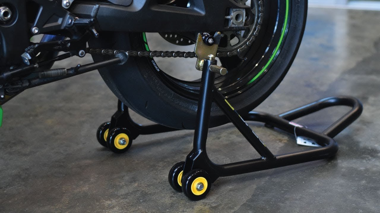 4. สแตนยกล้อ ให้ประโยชน์สองเด้ง นอกจากจะใช้ล้างโซ่แล้วยังช่วยรักษาล้อของคุณอีกด้วย การจอดรถทิ้งไว้นานทำให้ยางถูกกดทับจุดเดียวเป็นเวลานานทำให้ยางเสื่อมสภาพเร็ว หากคุณจอดรถทิ้งนานโดยเฉพาะช่วงนี้ ควรใช้สแตนยกล้อทิ้งไว้ เพื่อไม่ให้มีน้ำหนักกดล้ออยู่จุดเดียว นอกจากนั้นคุณมีที่เช็คลมและเติมลมให้ได้ตามสเปครถทุกครั้งที่นำรถออกไปขับหรือออกทริป