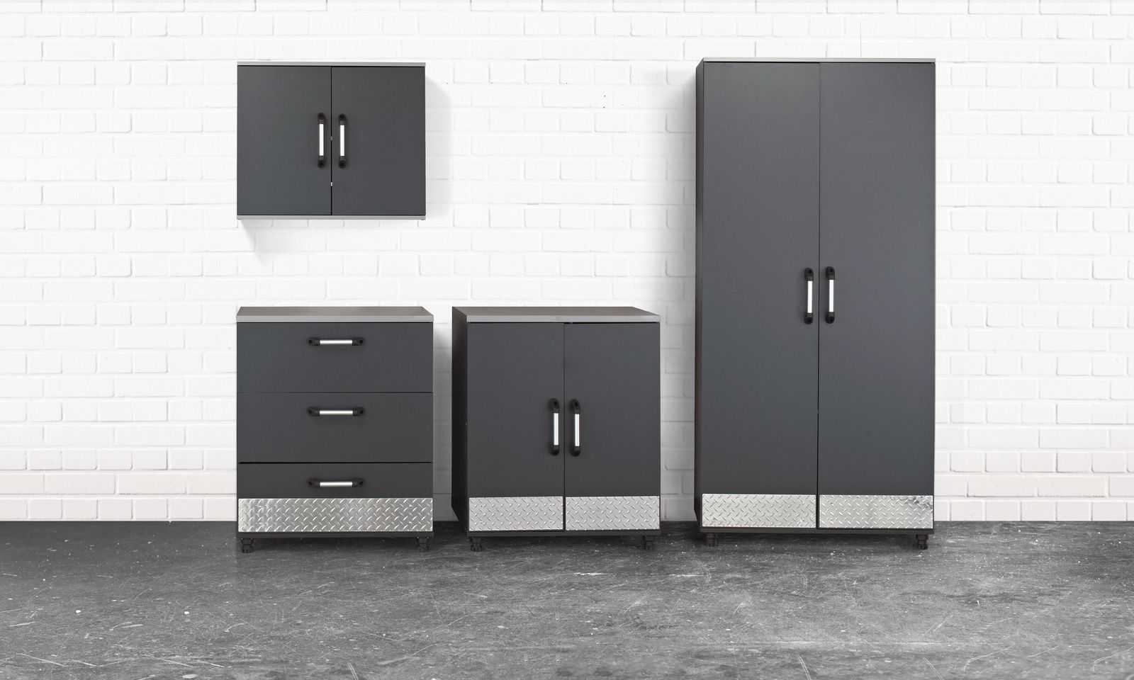 การติดตั้งตู้เก็บอุปกรณ์ในโรงรถจะช่วยจัดระเบียบพื้นที่ได้มากขึ้น โดยเลือกใช้ตู้ที่ทำจากวัสดุกันน้ำและกันสนิมเพื่อความทนทาน อาจลองติดตั้งตู้เก็บของบนผนังก็จะยิ่งช่วยให้มีเนื้อที่ใช้สอยได้มากขึ้น และสามารถติดตั้งไฟส่องสว่างในตู้เพื่อความสะดวกในการใช้งานในที่มืด