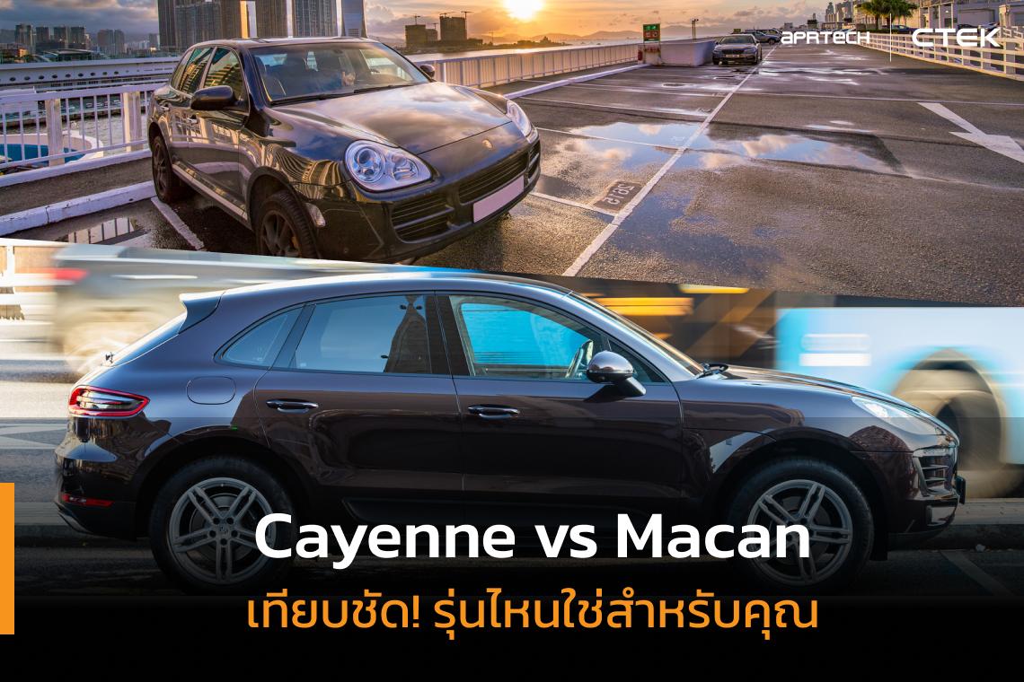 ในปัจจุบันการเลือกซื้อรถยนต์สักคัน เราต้องคำนึงถึงหลาย ๆ ปัจจัย ไม่ว่าจะเป็นการใช้งาน ราคา และค่าบำรุงรักษา ซึ่งตอนนี้กระแสรถยนต์ SUV กำลังเป็นที่นิยม ด้วยคุณสมบัติครอบคลุมทุกฟังก์ชัน เหมาะกับการใช้งานทุกรูปแบบ หนึ่งในนั้นต้องมียี่ห้อ “Porsche” โดยเฉพาะในรุ่น Macan กับ Cayenne เป็นสองรุ่นยอดนิยมที่ใคร ๆ ก็อยากมีไว้ในครอบครองสักคัน ด้วยเอกลักษณ์ของทั้งสองรุ่นต่างโดดเด่นไม่แพ้กัน ทำให้เกิดความลังเลว่ารุ่นไหนที่เหมาะกับเราที่สุด วันนี้ APRTECH จึงมาไขข้อสงสัยระหว่าง Porsche Macan กับ Porsche Cayenne ต่างกันอย่างไร? โดยจะเปรียบเทียบความแตกต่างให้เห็นชัดเจน ว่ารถสไตล์ไหนเหมาะกับไลฟ์สไตล์เรามากที่สุด