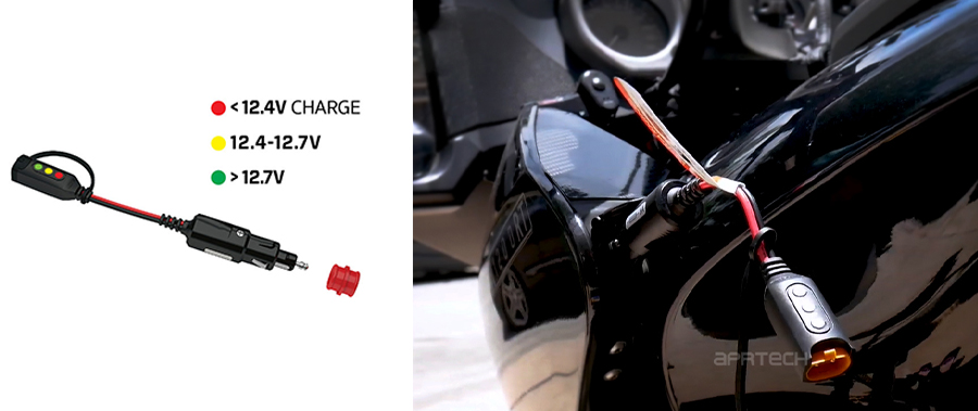 2. Comfort Indicator Cig Plug เพิ่มความสะดวกสบายในการชาร์จแบตเตอรี่ เพียงเสียบชาร์จกับที่จุดบุหรี่ ไม่ต้องต่อสายจากขั้วแบตเตอรี่ ใช้ได้กับปลั๊กขนาด 12มม.และ 21มม. อีกด้านมาพร้อมไฟกระพริบบอกสถานะ 3 สี